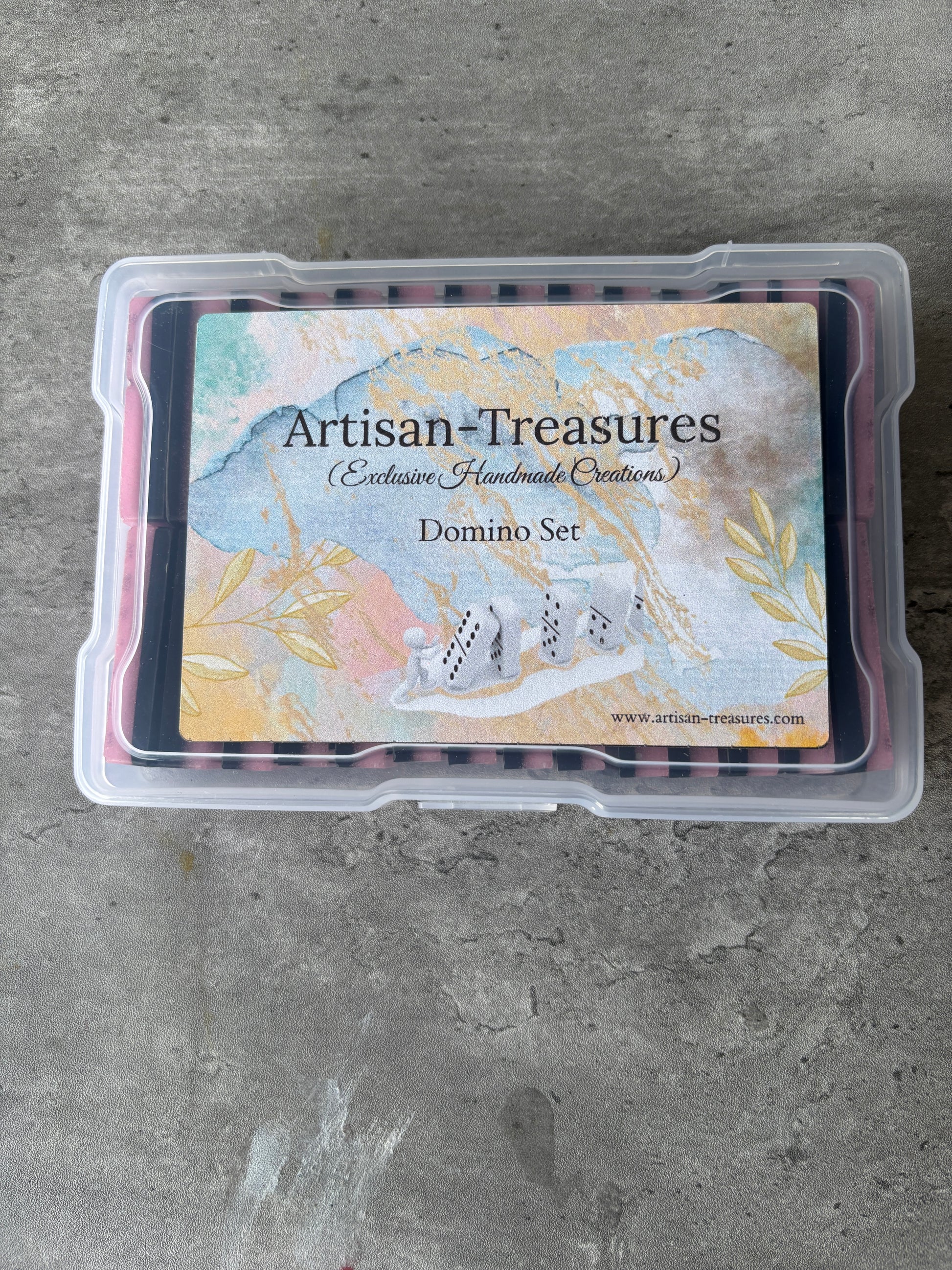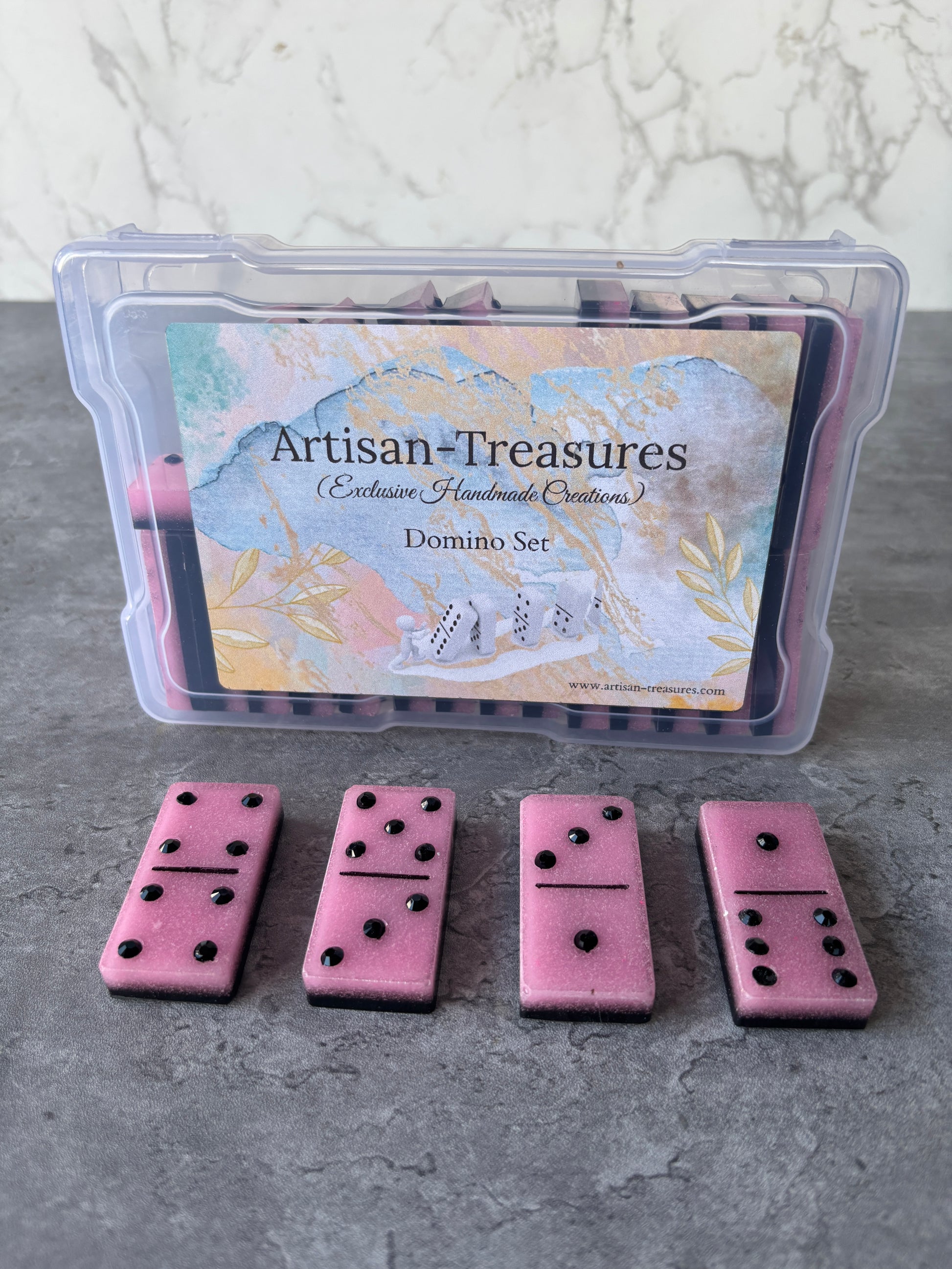 Brand new 28-piece dominoes set in a stunning pink and black, crafted from durable resin and elegantly embellished with sparkling rhinestones. Perfect for game nights or as a unique gift.