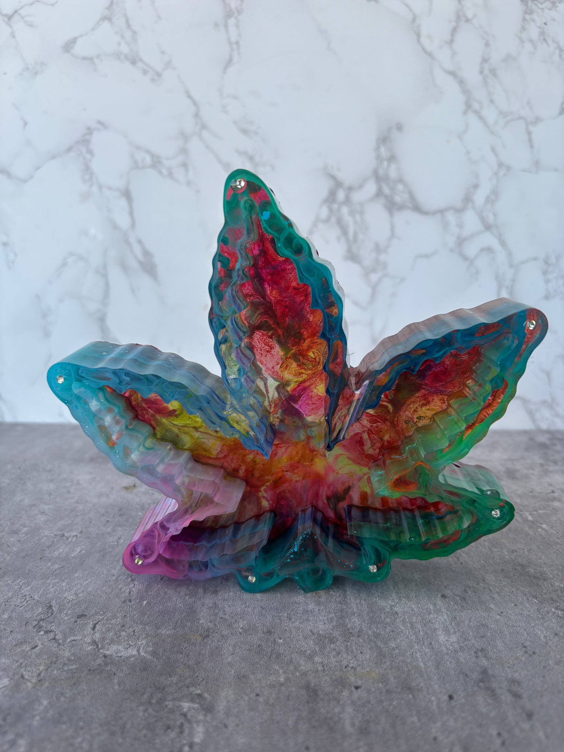 This handmade resin ashtray, available at www.artisan-treasures.com, boasts a unique, one-of-a-kind pattern created with vibrant alcohol inks. Not just for only an ashtrays it’s also versatility also makes it a stunning jewelry holder. Care tips: Keep away from heat and clean with a warm cloth.