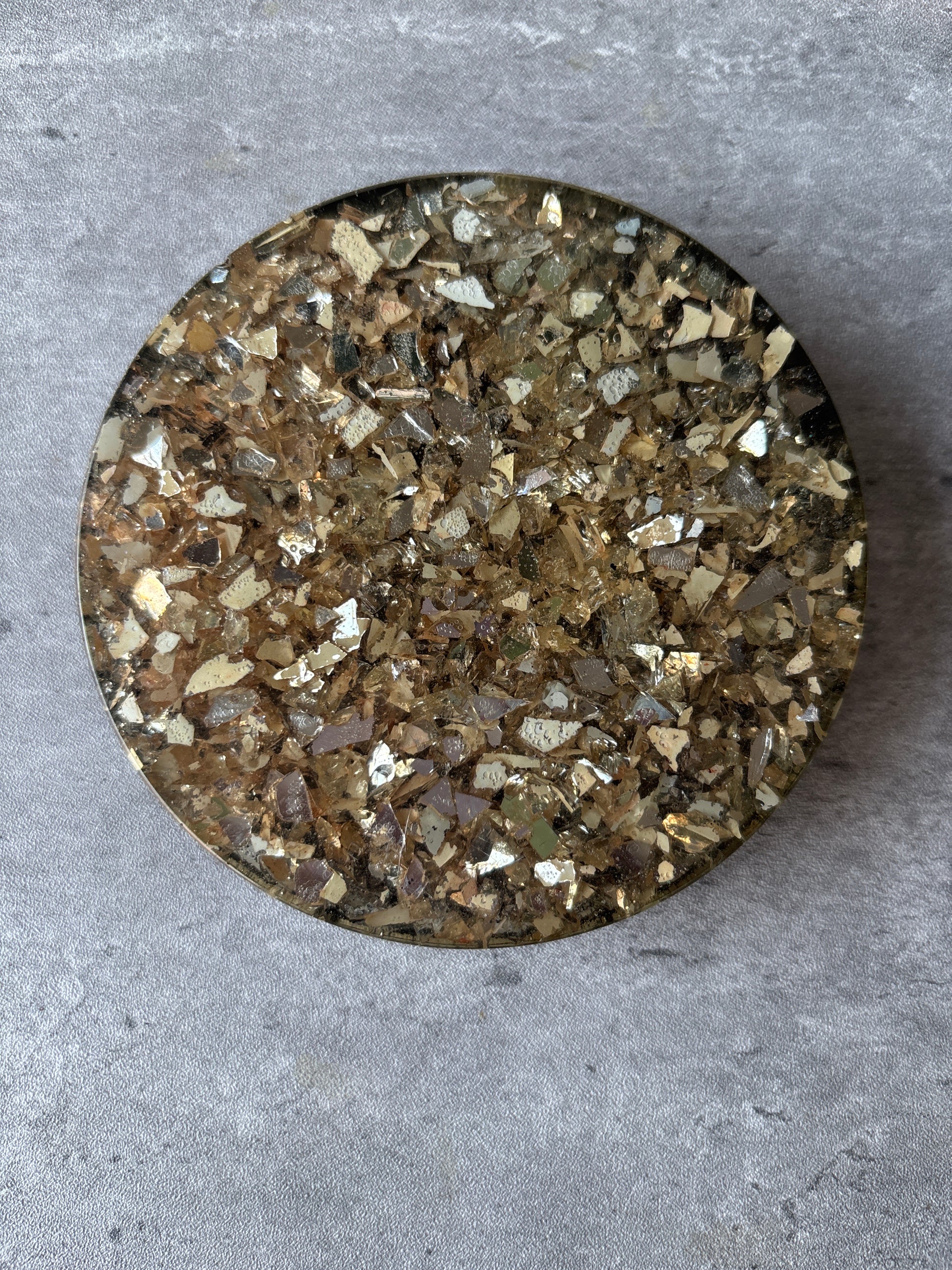 These round large coasters can also be used as paper weights and are are expertly handmade with crushed mirror and sea shell embellishments. Keep them away from direct sunlight to avoid yellowing or fading, and gently clean with a soft, damp cloth using only mild chemicals. Avoid harsh chemicals or abrasive cleaners and do not place in the dishwasher or soak in water. Designed to make a statement while protecting your surfaces, these coasters truly are a unique and functional piece for any home.
