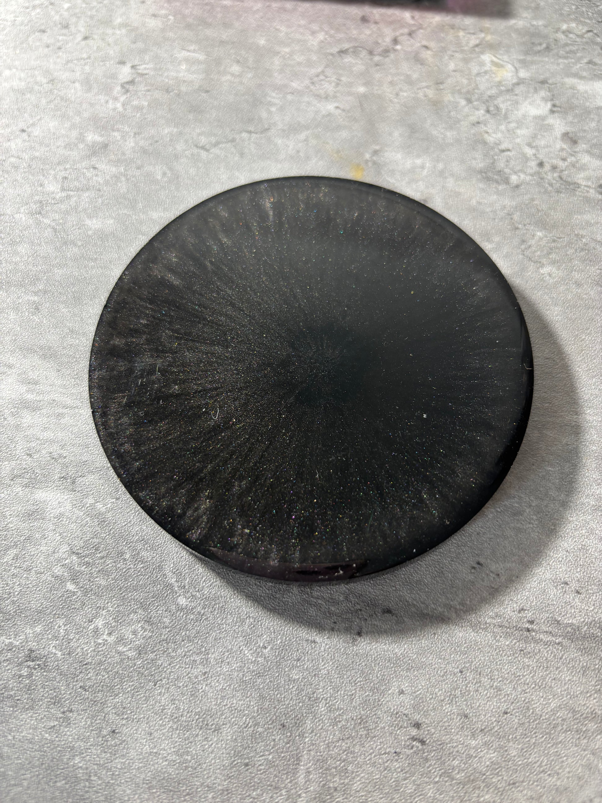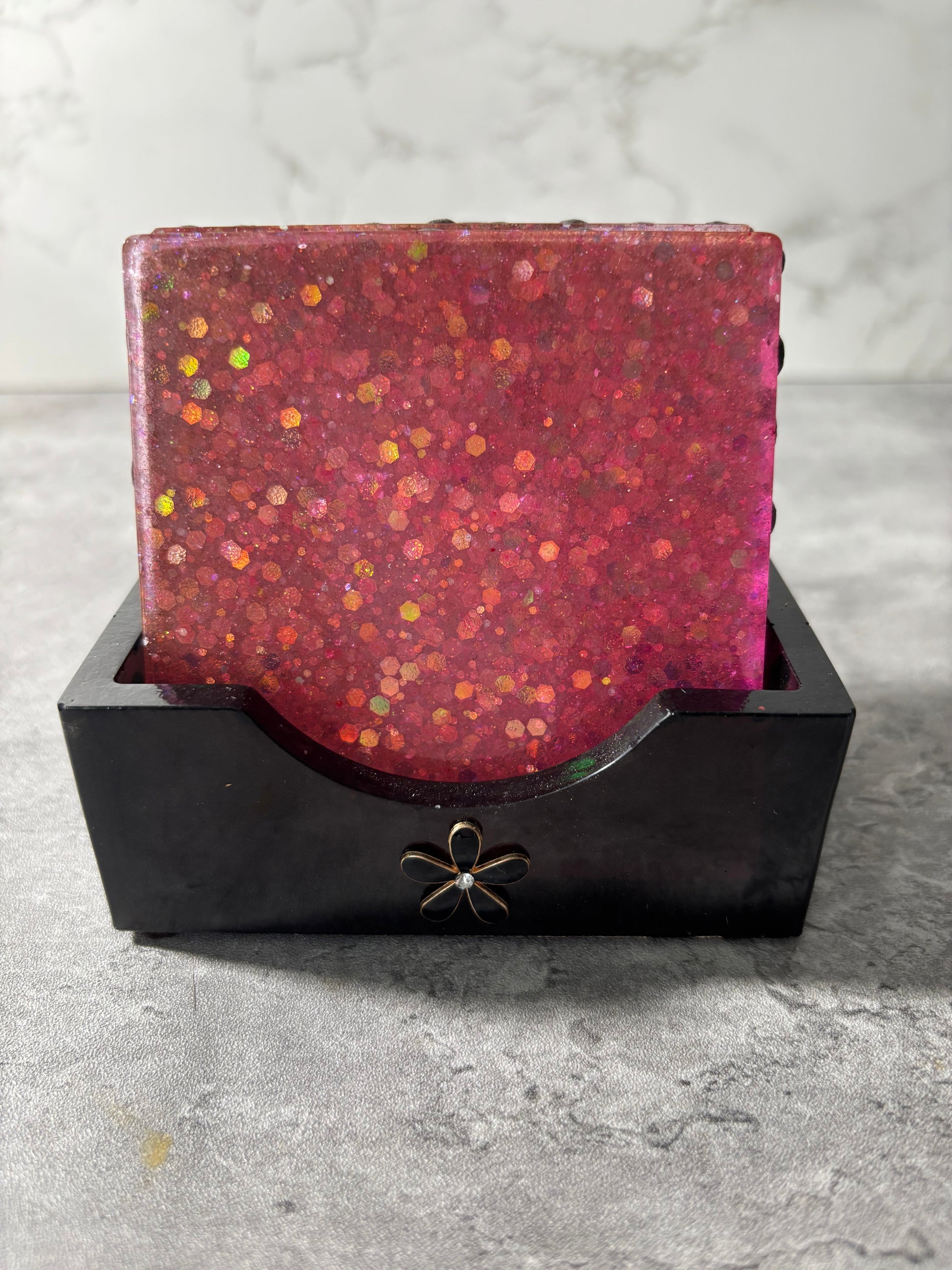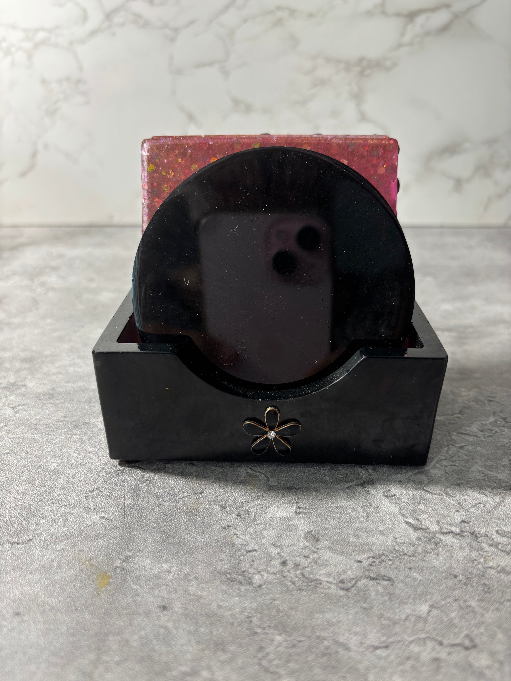 Discover the beauty and uniqueness of our handmade resin coasters. Made with vibrant pink and black colors, these five piece coasters will add a touch of style and protection to any table. Crafted with care and love, they make the perfect addition to any home decor.