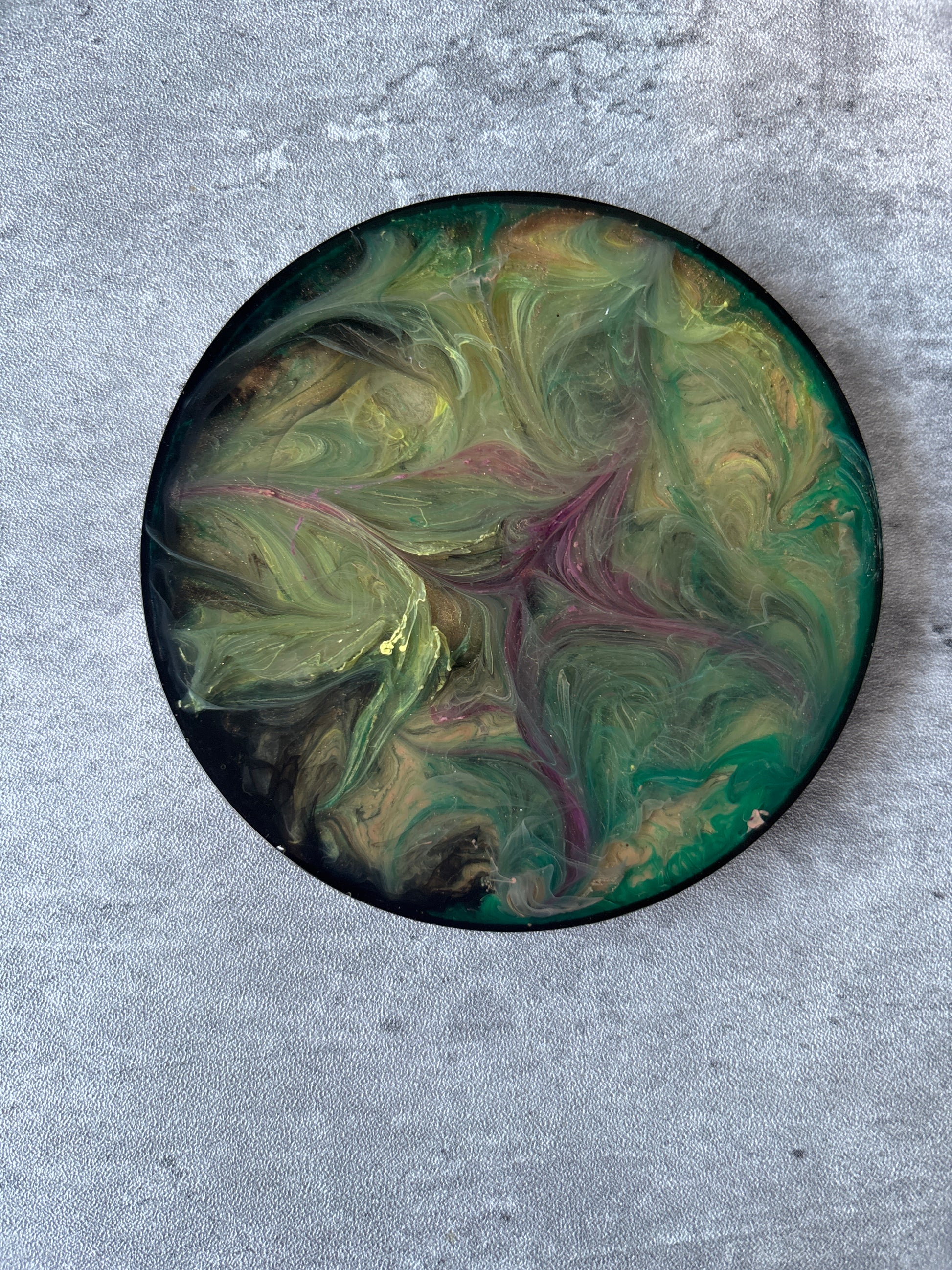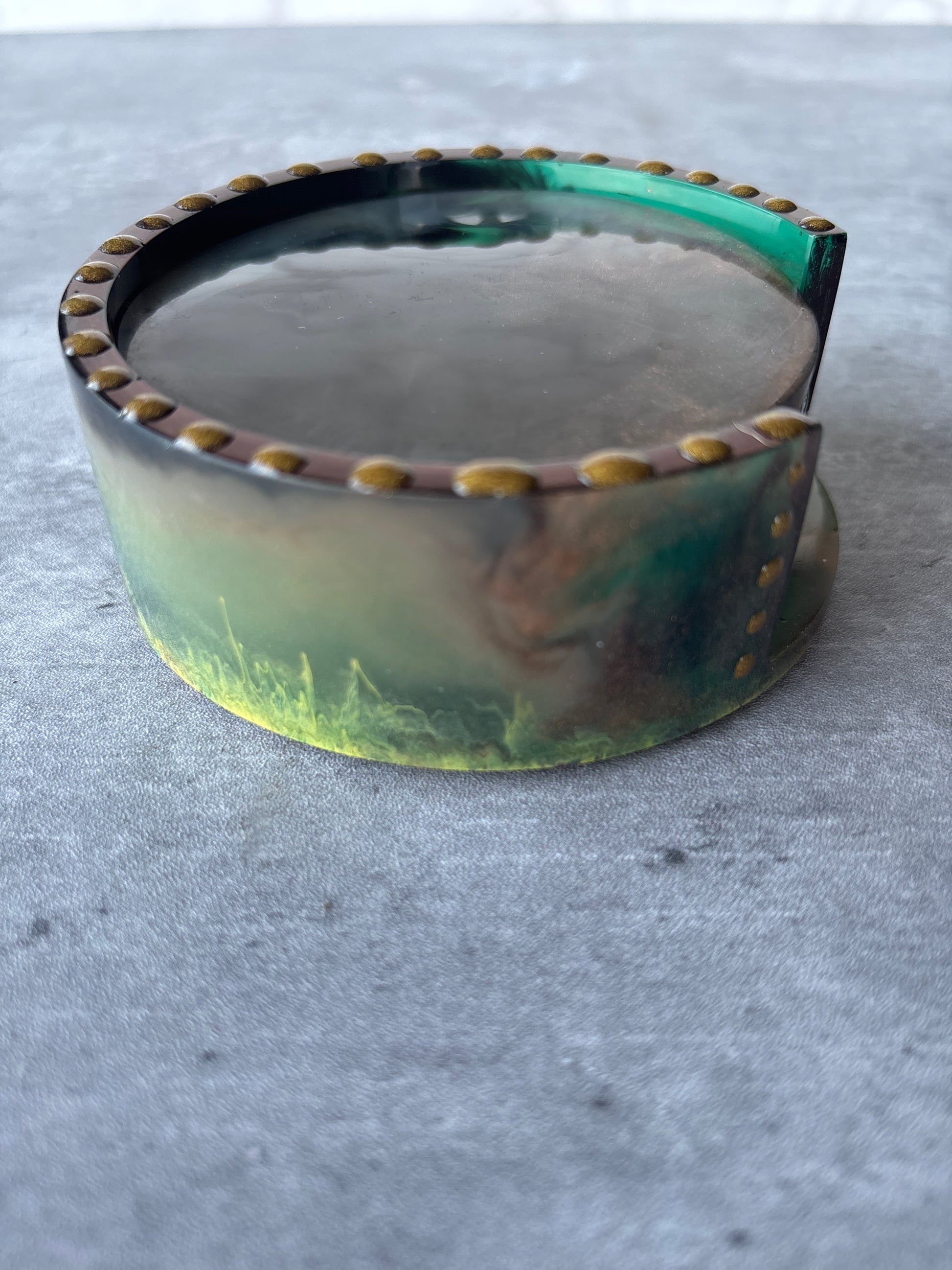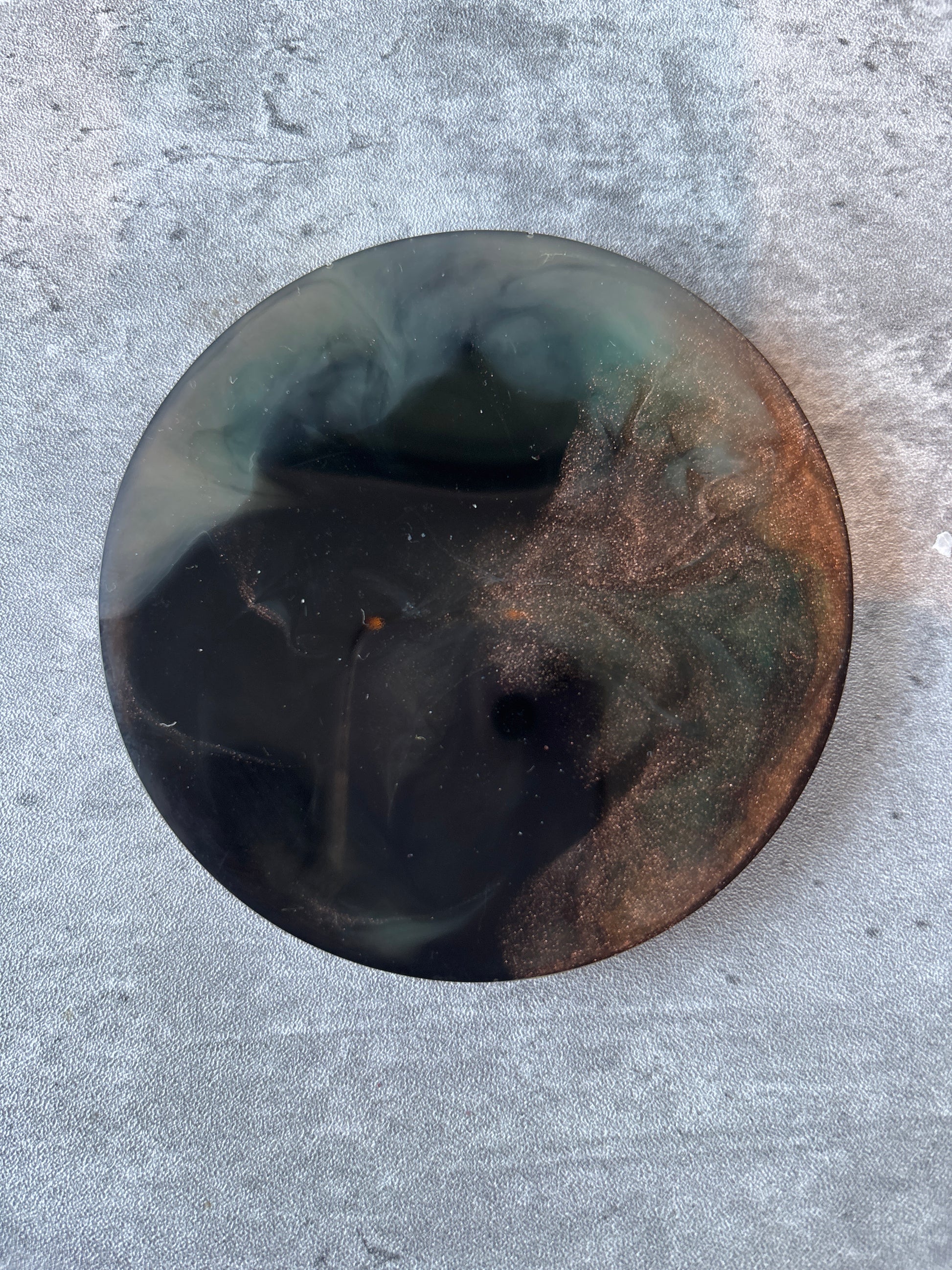 The 5pc Round Coaster Set is perfect for protecting your surfaces while also adding a touch of style. Handmade from resin and featuring unique designs on both sides, these coasters are sure to impress. Avoid yellowing or fading by keeping them away from direct sunlight and use a soft, damp cloth for cleaning. Please do not place in dishwasher or soak in water and handle with care to prevent chipping or cracking. Store in a cool, dry place when not in use.