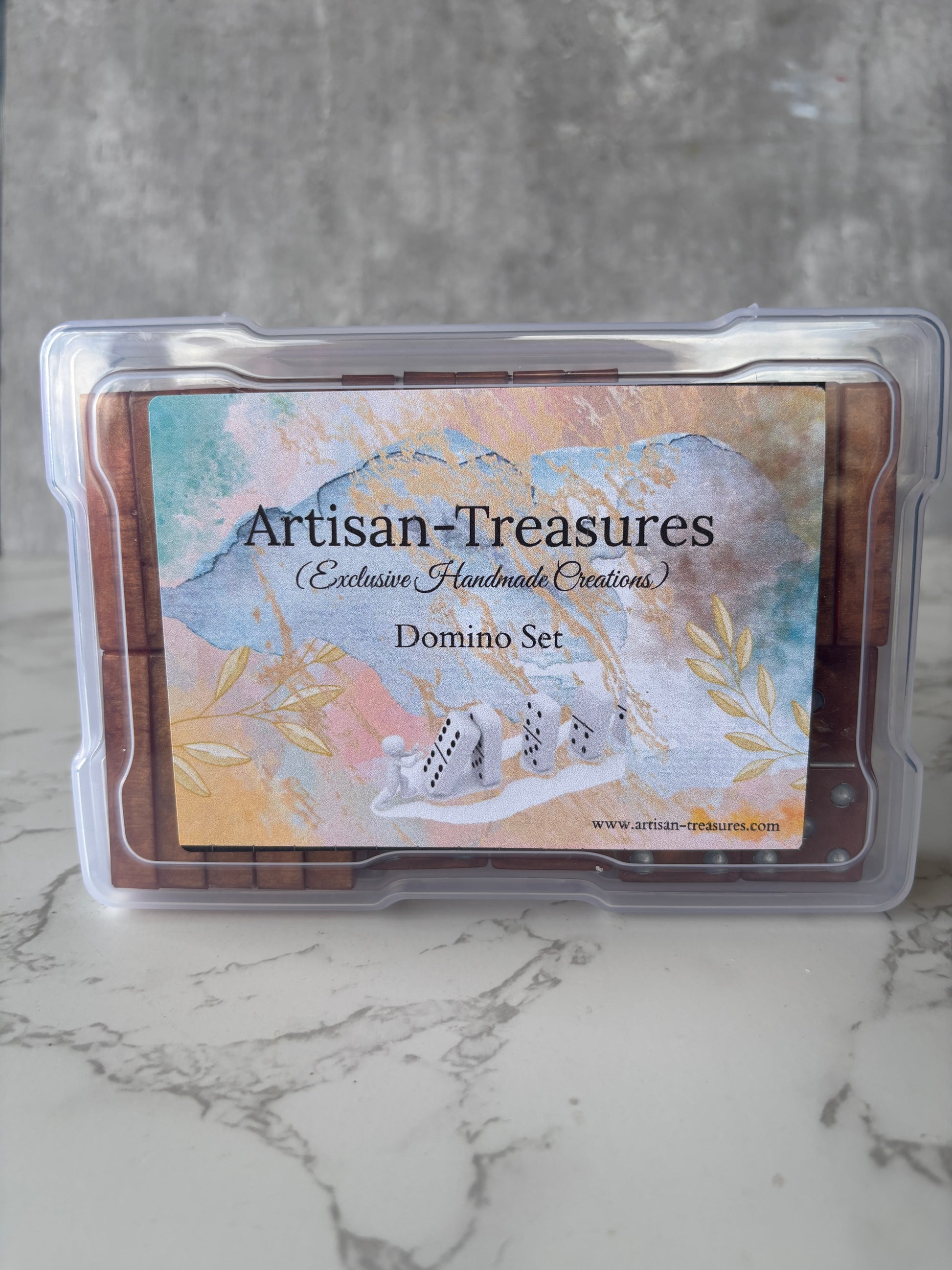 Take a risk and up your game night with this 28-piece domino set. Handmade from rich brown resin with bold black dots, it's perfect for challenging your friends on Fridays and Saturdays. Or treat someone special to this unique and thoughtful gift. Not machine washable—just wipe with warm water!